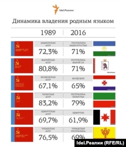 Количество татар, проживавших во всем Союзе, составляло 6,6 млн. Из них татарский называли своим родным языком 83,2%, и всего лишь две трети (70,8%) свободно изъяснялись по-русски. В РСФСР проживало 5,52 млн татар.