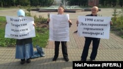 Сегодня с десяток человек вышли в пикет в сквере имени Тинчурина, посвященный 26-летию принятия декларации о государственном суверенитете Татарстана. Корреспондент "Idel.Реалии" поинтересовался у участников акции, что они испытывали в августе 1990 года, на что надеялись, и что чувствуют сейчас. Кроме того, на пикете подняли тему предстоящей пролонгации договора о разграничении полномочий между федеральным центром и республикой. По мнению участников акции, текст договора необходимо вынести на республиканский референдум.