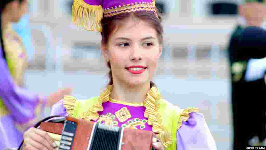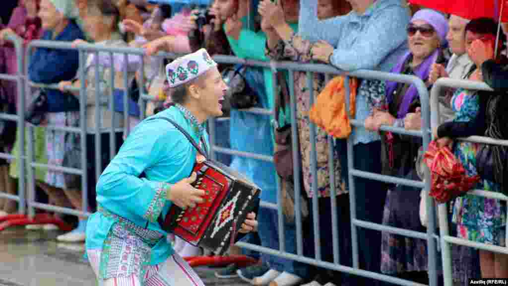 30 августа на площади перед театром Г.Камала прошел традиционный праздник "Играй, гармонь!". Шел дождь - зрителям, пришедшим к 10 утра, пришлось дожидаться начала музыкального праздника целый час. В прошлом году народу было ощутимо больше. В этот раз у театра Г.Камала не было ни одной вывески, ни одного баннера с поздравлениями с Днем Республики.