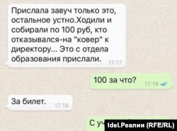- Это сообщение отправили из отдела образования Московского района. Я прочитала вашу статью в Facebook, разозлилась и сфотографировала это. Нас во вторник собрали и сказали, что всем надо пойти на футбол. Добровольно-принудительно. О добровольности речь не шла. В среду наш педагог ходила по кабинетам и со всех учителей собирала по сто рублей. Отказавшихся было мало, но некоторые всё-таки отказались. Кто отказался – вызывала директор, убеждала идти. Их тоже заставляют, я ее тоже понимаю…