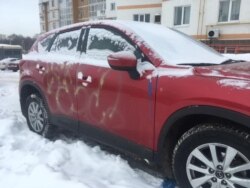 Об этом активистка сообщила в своем Фейсбуке, опубликовав фотографии испорченной машины. Лобовое стекло автомобиля оказалось наполовину залито синей краской, а двери разрисованы различными “непотребными” рисунками.