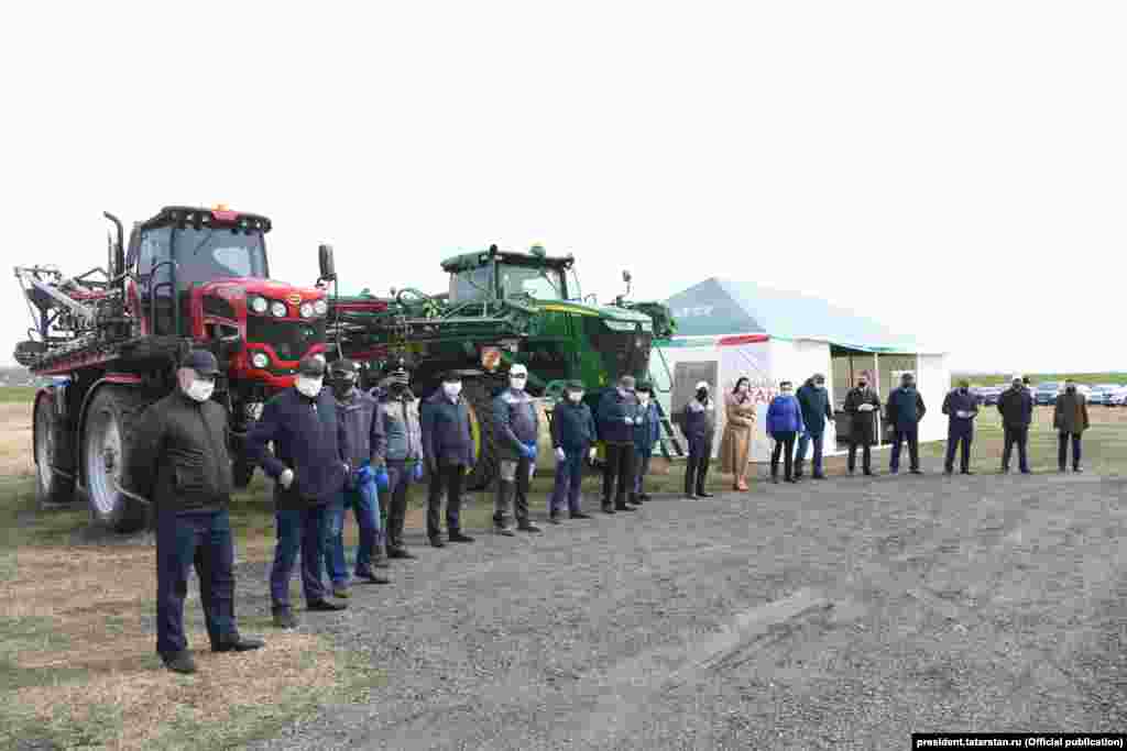 Все кадры сделаны во время поездок президента РТ Рустама Минниханова в сельские районы в апреле 2020 года, когда в Татарстане уже действовал режим строгой "самоизоляции".