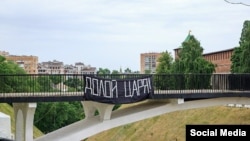 Плакат с этой надписью был размещен у стен нижегородского кремля.
