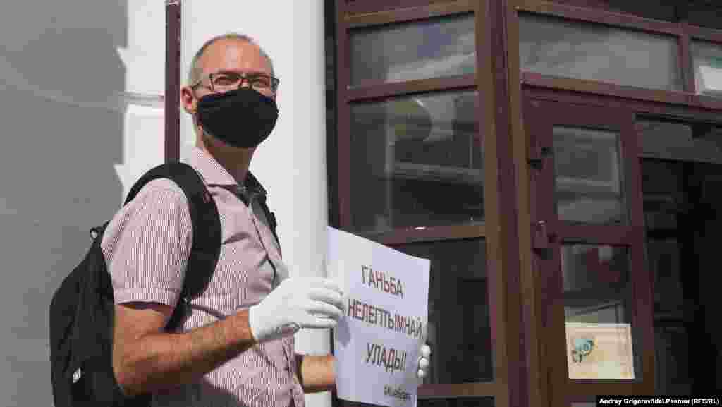 Почти час простоял в одиночном пикете с плакатом "Ганьба нелегітымнай улады!" ("Позор нелегитимной власти!") у отделения посольства Республика Беларусь в Казани активист и социолог Искандер Ясавеев. Отделение расположено в одном дворе с республиканскими структурами, крыльцо — под прицелом нескольких камер, но за целый час к Искандеру так ни разу и не вышел ни один полицейский, который заинтересовался бы надписью на плакате и доложил «наверх» о случившемся.