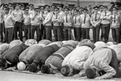 "Это 1991 год, намаз на площади Свободы. Этот снимок среди прочих я вывозил в Турцию, как только открылся железный занавес. Были музыканты, художники и моя выставка о Татарстане. И у этой работы всегда скапливались люди. Почему полиция не молится? У них все молятся, потому что пришло время намаза.