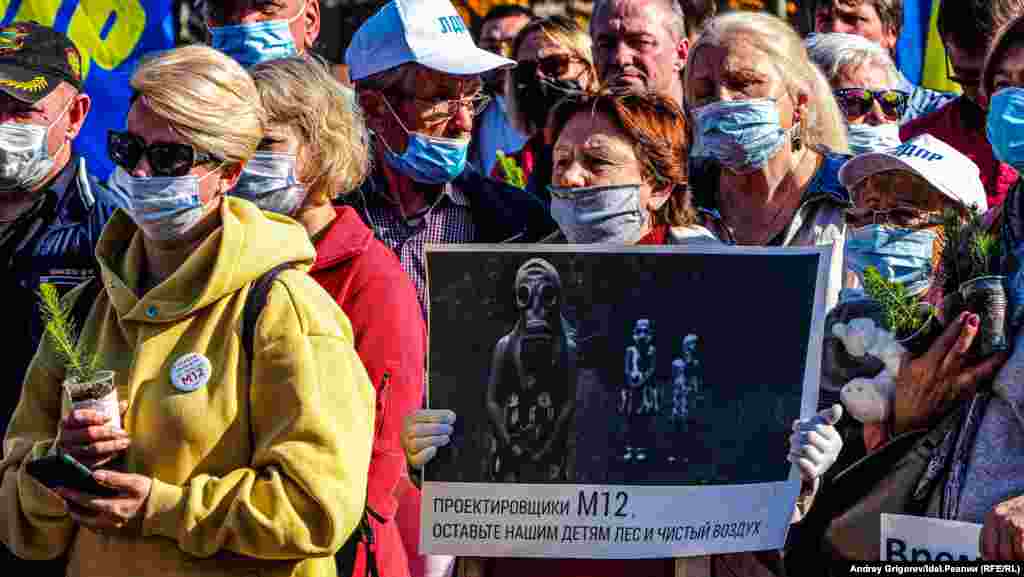 Митинг (его помогла провести ЛДПР) состоялся в сквере Славы на проспекте Победы — в ближайшем к южному выезду из Казани гайд-парке. Собравшиеся — которых, по подсчетам организаторов, было не менее 400 человек — держали в руках горшочки с маленькими сосенками.
