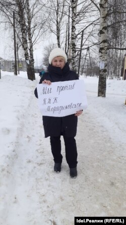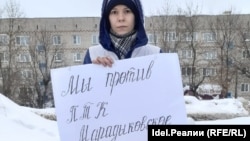 В ней приняли участие пять гражданских активистов. На заснеженной улице в Котельниче они по очереди стояли с плакатом "Мы против ПТК "Марадыковское". Акция продолжалась три часа.
