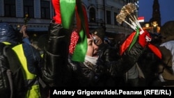 В другом — задержанные начали петь. Когда журналисты навели на них камеры, двери автозака закрылись и автомобиль уехал. Всего на улице Дзержинского было три автозака. Кстати, ими на этот раз стали не городские пассажирские автобусы, как это было на протесте 31 января, а междугородние.