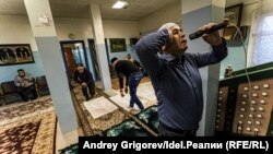 К вечерней молитве подтягиваются девушки в мусульманских платках. Они не прихожанки, просто гости, объясняет мне помощник имам-хатыйба мечети Айдар Сагиров. Их появление вносит небольшую сумятицу — ислам предписывает мужчинам и женщинам молиться отдельно. Девушкам выделяют комнату, где уже накрыт длинный стол для ифтара, дверной проём, ведущий в молельный зал, занавешивают плотным покрывалом...