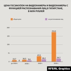 В Минцифры "Idel.Реалии" заявили, что в 2021 году планируется продолжить "работу по дальнейшему расширению системы видеомониторинга в Татарстане (установка 1 000 видеокамер) для обеспечения безопасности населения республики". При этом в министерстве уточняют, что занимаются в том числе и заключением контрактов "на оказание услуг по организации видеонаблюдения с функцией распознавания лиц и биометрической идентификации по фотоизображению лица человека".