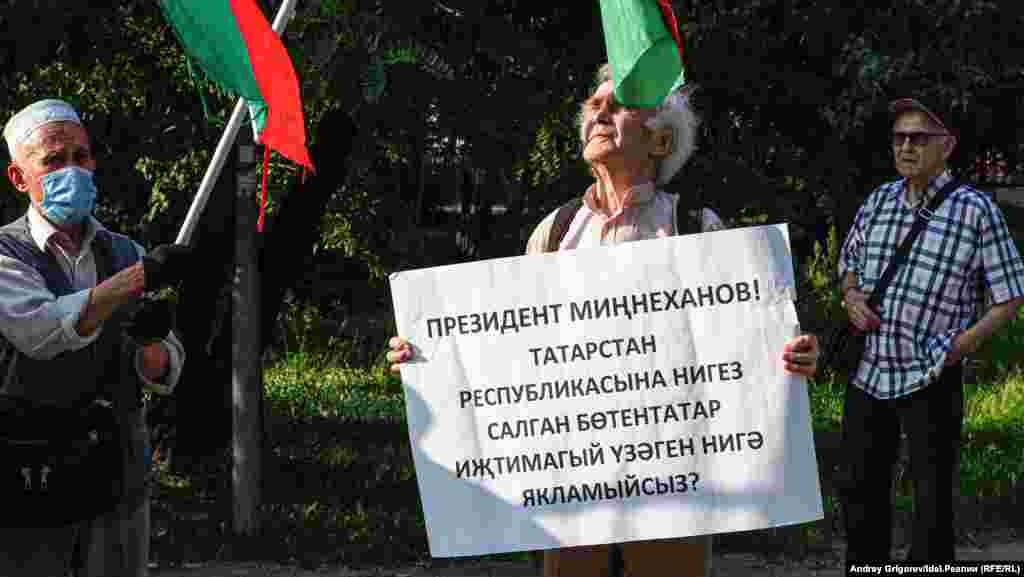 "Прокурор Нафиков! Требуем отказаться от позорного иска против ВТОЦ", гласила надпись на одном из плакатов. Еще на одном плакате была надпись "Татарстан: 2021 = 1937". Кроме того, активисты требовали от президента РТ Рустама Минниханова и председателя Госсовета Татарстана Фарида Мухаметшина признать 15 октября памятным днём (последние несколько лет власти в Татарстане под разными предлогами препятствуют проведению акций, посвященных этой дате).