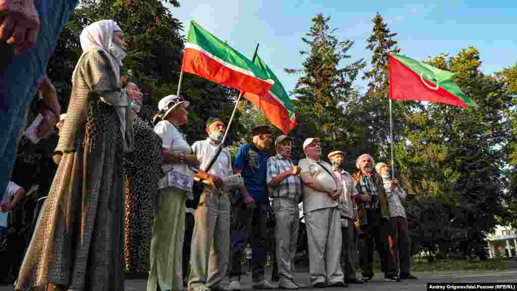 Участникам удалось согласовать митинг в центре города. На акцию в Ленинском садике собралось несколько десятков человек, в том числе — активисты Всетатарского общественного центра (ВТОЦ), ликвидации которого, как "экстремистской организации", добивается прокуратура РТ.