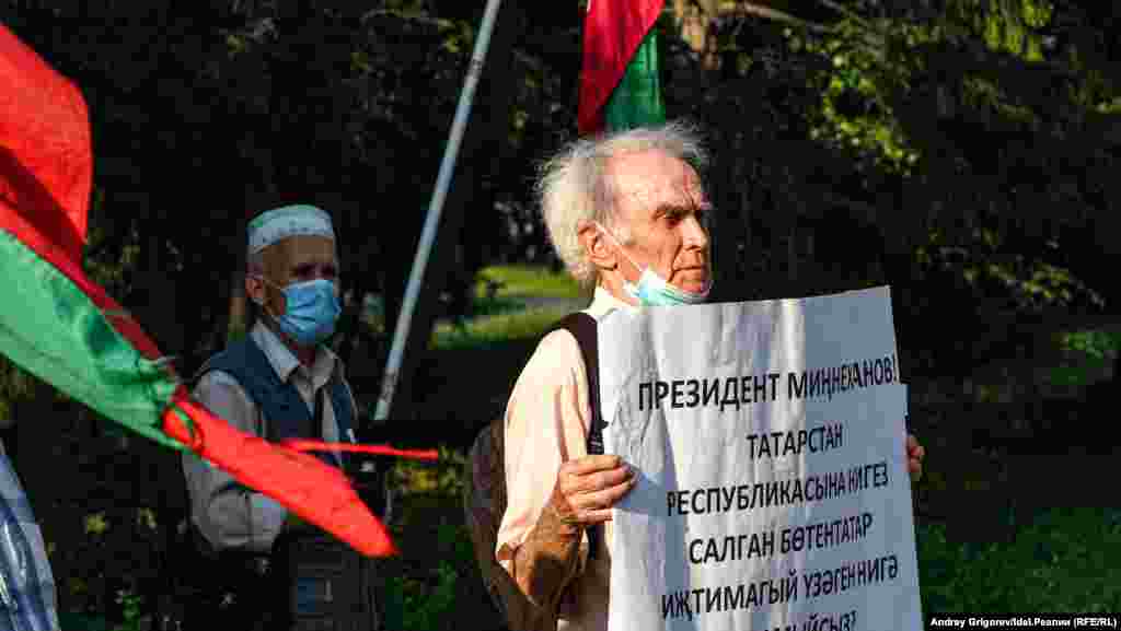 "Прокурор Нафиков! Требуем отказаться от позорного иска против ВТОЦ", гласила надпись на одном из плакатов. Еще на одном плакате была надпись "Татарстан: 2021 = 1937". Кроме того, активисты требовали от президента РТ Рустама Минниханова и председателя Госсовета Татарстана Фарида Мухаметшина признать 15 октября памятным днём (последние несколько лет власти в Татарстане под разными предлогами препятствуют проведению акций, посвященных этой дате).