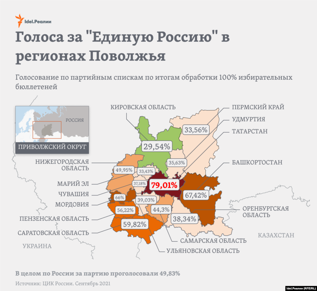 Сколько процентов "Единая Россия" набрала в регионах Поволжья