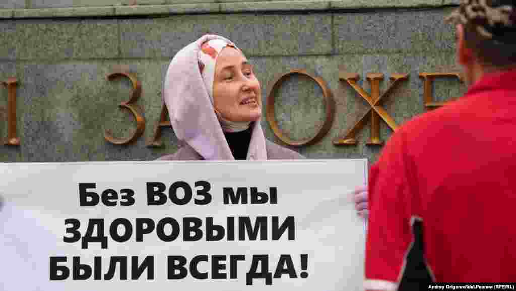 Противники ВОЗ провели в воскресенье, 10 октября, массовый пикет против учений Всемирной организации здравоохранения в Казани. Двухчасовая акция протеста состоялась в сквере славы у станции метро "Проспект Победы". Участники держали в руках плакаты с красноречивыми лозунгами — "Без ВОЗ мы здоровыми были всегда", "За выход России из ВОЗ", "ВОЗ, руки прочь от Казани!"