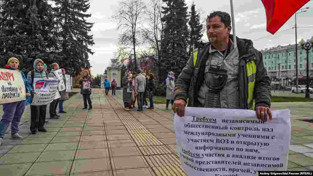 Как уже рассказывали "Idel.Реалии", ВОЗ и Роспотребнадзор проводят в Казани учения, на которых отрабатываются действия мобильных госпиталей в условиях эпидемий. Эта новость почему-то вызвала панику среди части казанских общественников и обросла фантастическими слухами. Участники акций протестов против учений рассказывают, что ВОЗ в Казани собирается ставить опыты на людях.