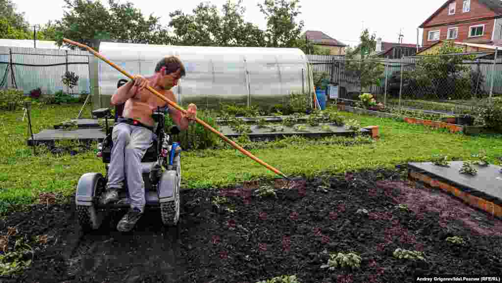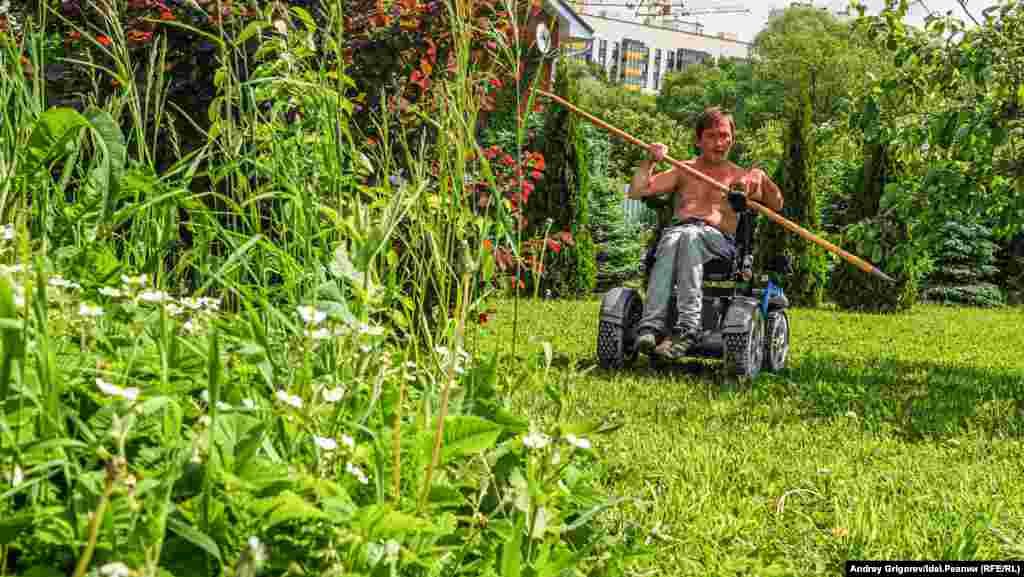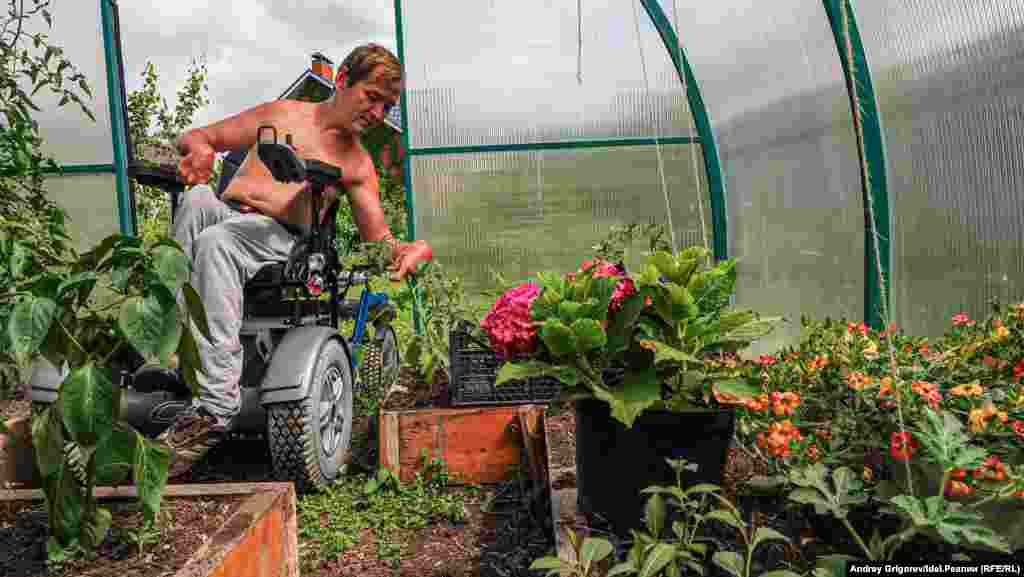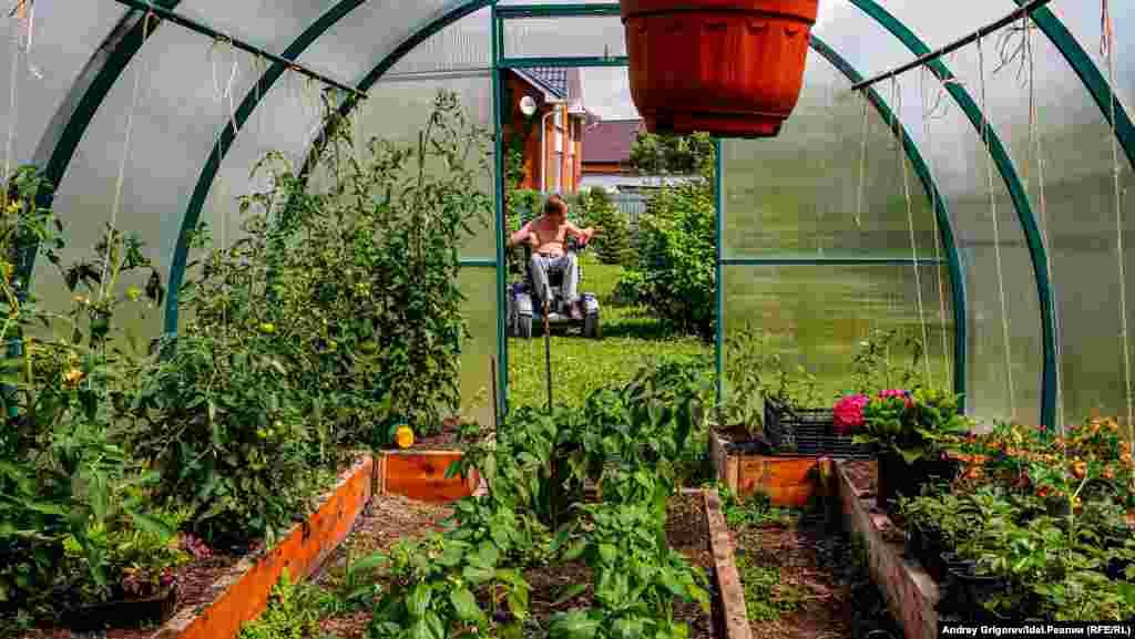 Казанец Антон Кайнов прикован к инвалидной коляске, но это не мешает ему самостоятельно справляться с многочисленными обязанностями по дому. Он живёт в частном доме в казанском посёлке Малые Клыки с большим огородом на заднем дворе и самостоятельно поливает овощи, пропалывает грядки и ухаживает за кустарниками. Правда, в прошлые годы (а снимки относятся к 2019-2020 гг.) делать ему это было намного легче, поскольку он передвигался на дорогих колясках, одну из которых он получил от президента РТ Рустама Минниханова после нескольких месяцев обивания порогов. Но те коляски уже вышли из строя на казанских дорогах, а на тех, которыми инвалидов обеспечивает соцстрах, особо не развернёшься. В конце августа коляска опрокинулась вместе с Антоном, когда он поливал огород. В итоге инвалид почти час пролежал на сырой земле, а теперь хочет засудить чиновников из Фонда социального страхования.