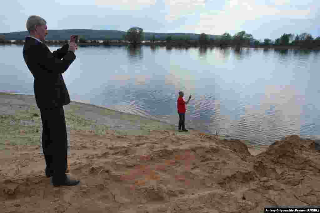 Перед вами уникальные кадры 2015 года: чиновники Минэкологии Татарстана вместе с экоактивистами и жителями Займища обследуют земельные участки, намытые на Волге структурами олигарха Равиля Зиганшина. Можно заметить, что новая суша возвышается над водой на несколько метров. Причем рабочие уже успели частично уложить коммуникации (например, торчащую из бархана трубу на заглавном фото) и установить несколько опор будущего моста.